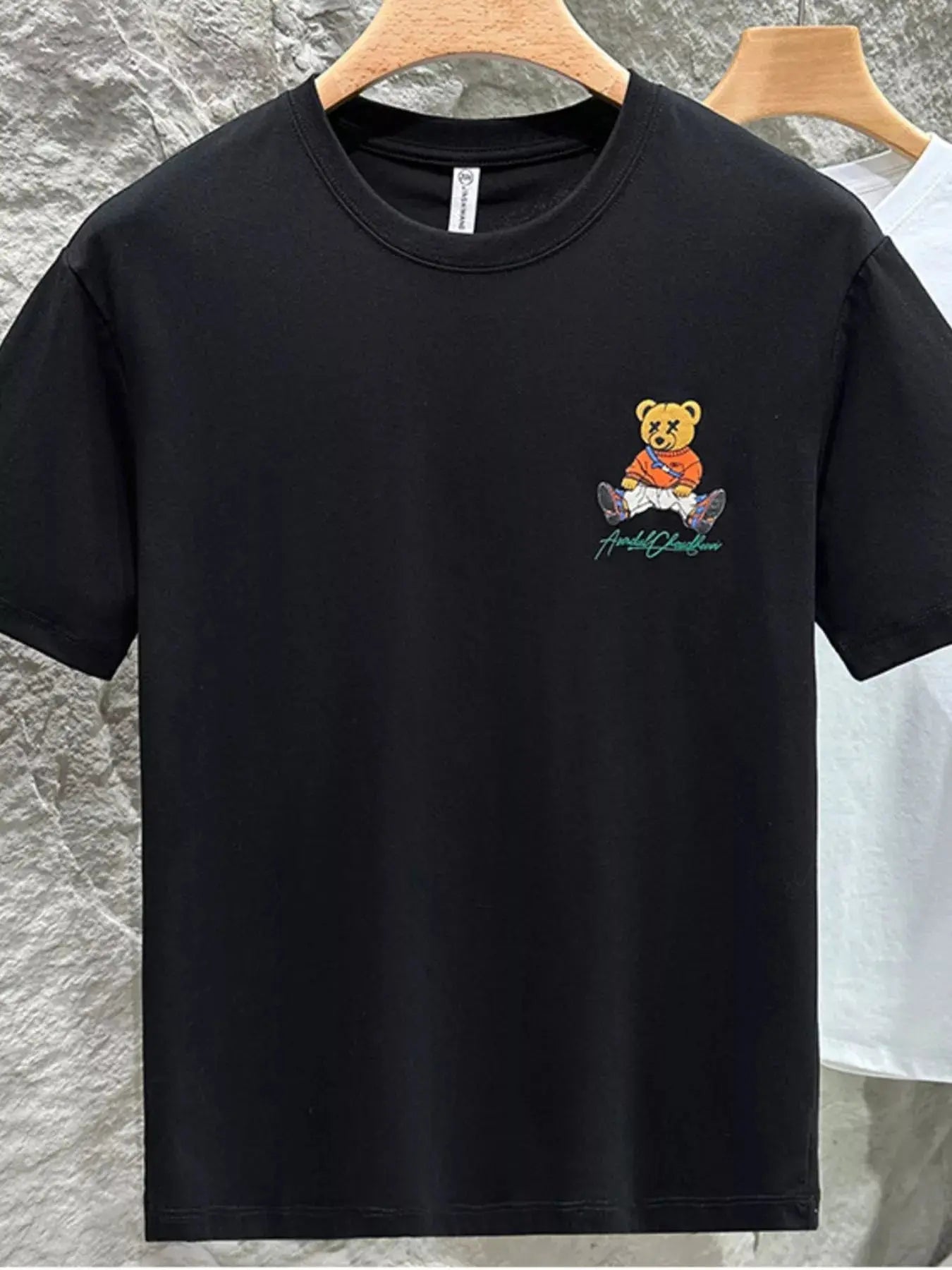 Show off your playful side with this men’s plus-size bear round neck short sleeve T-shirt. Featuring a bold graphic design and soft, breathable fabric, it’s the perfect choice for casual days, offering comfort and style in one.