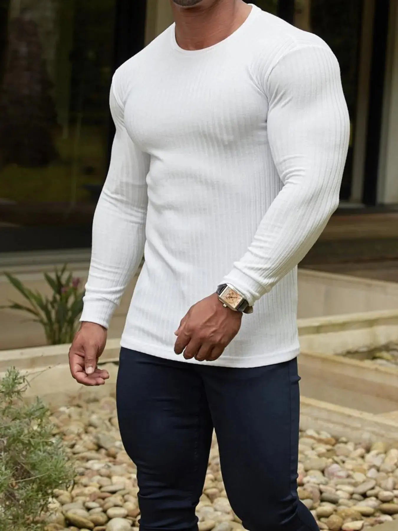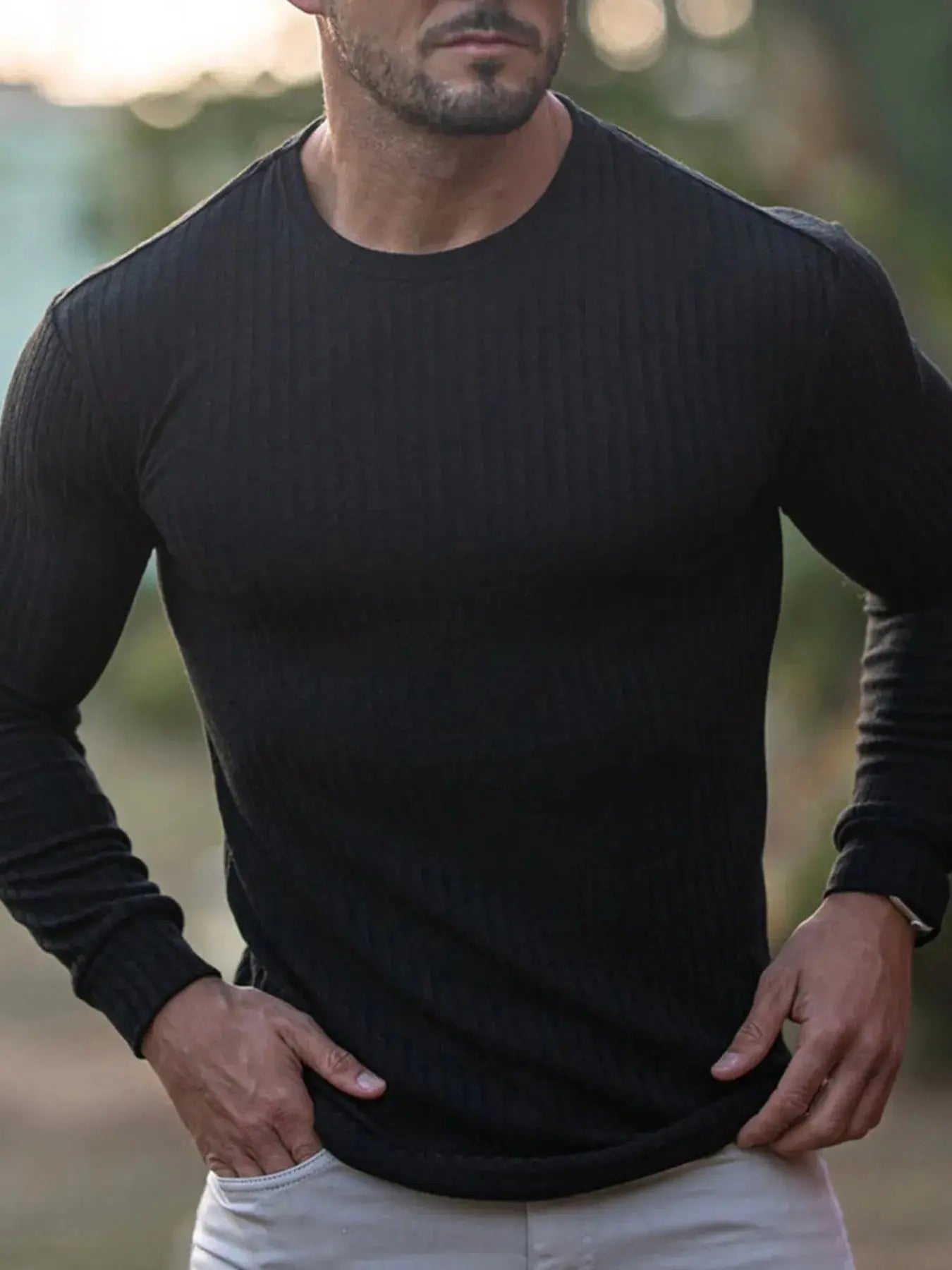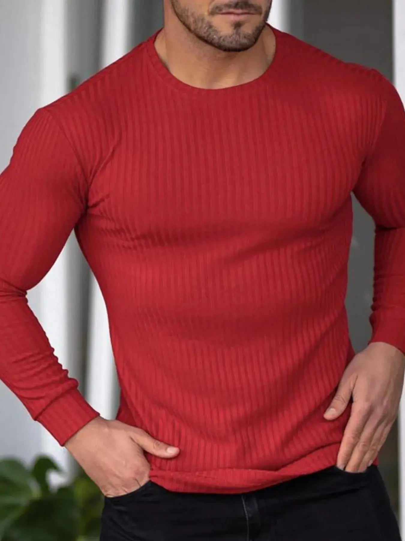 Crafted for comfort and style, this men's ribbed long sleeve T-shirt features a classic round neck design. Its soft, breathable fabric and modern fit make it a versatile essential for layering or wearing on its own.