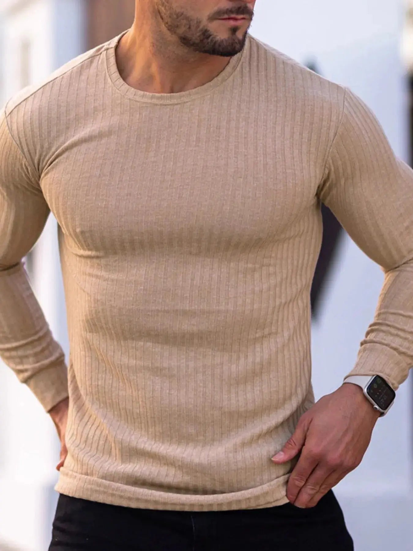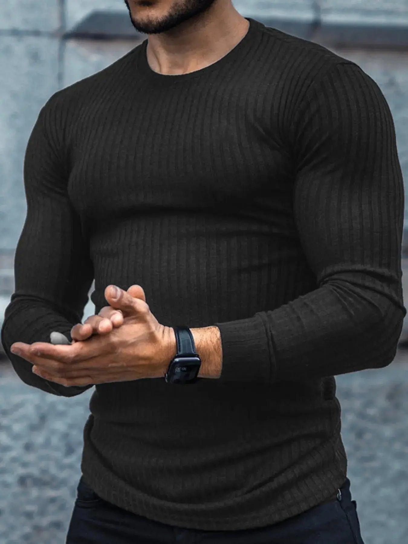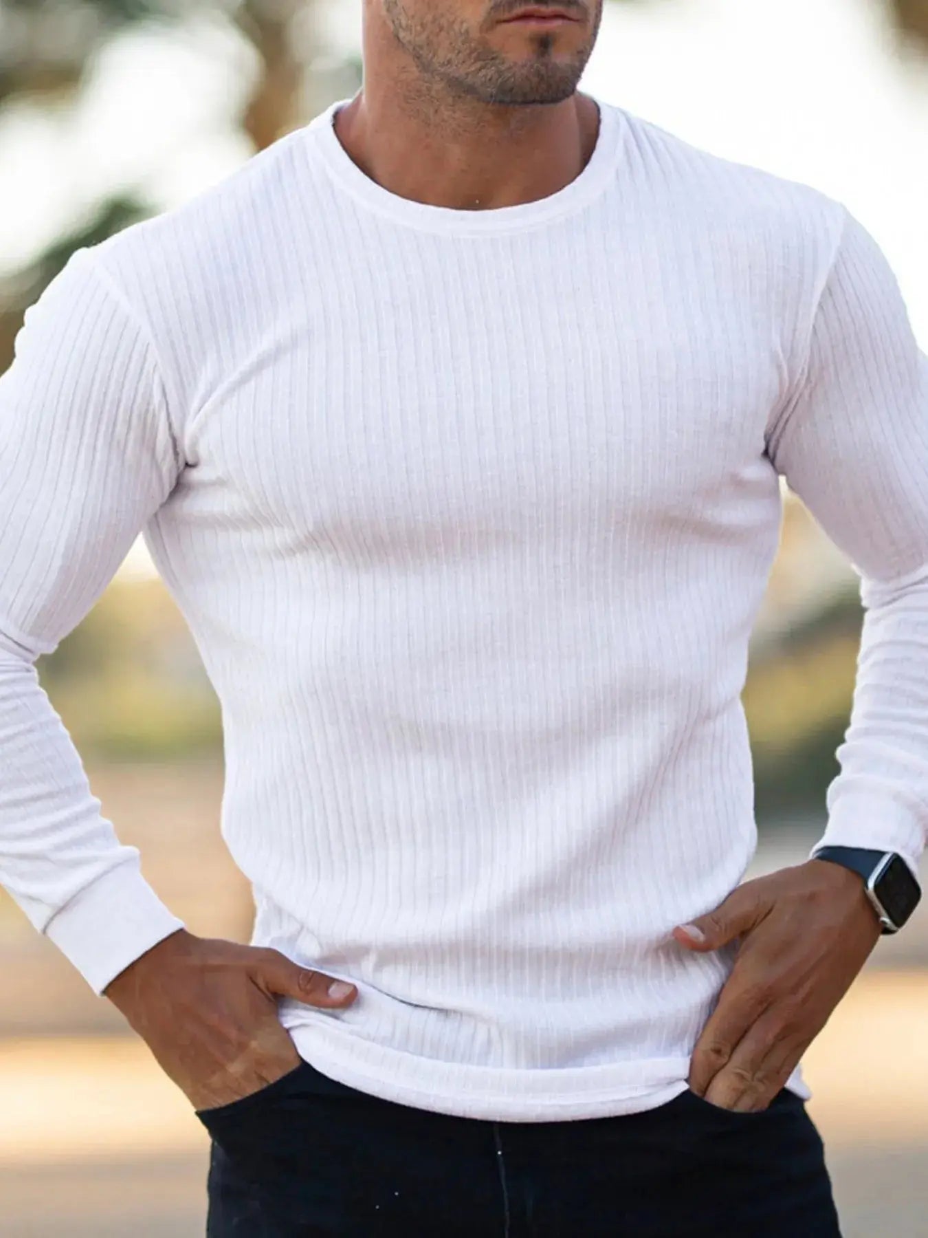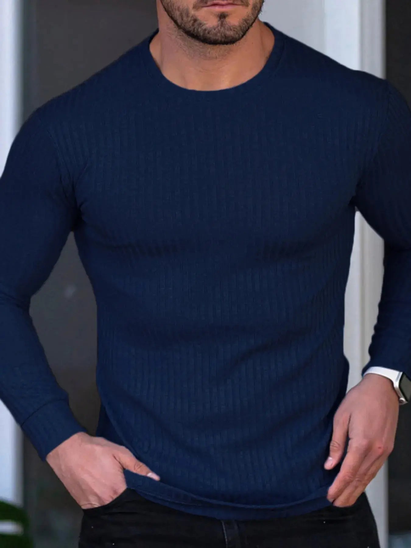 Crafted for comfort and style, this men's ribbed long sleeve T-shirt features a classic round neck design. Its soft, breathable fabric and modern fit make it a versatile essential for layering or wearing on its own.