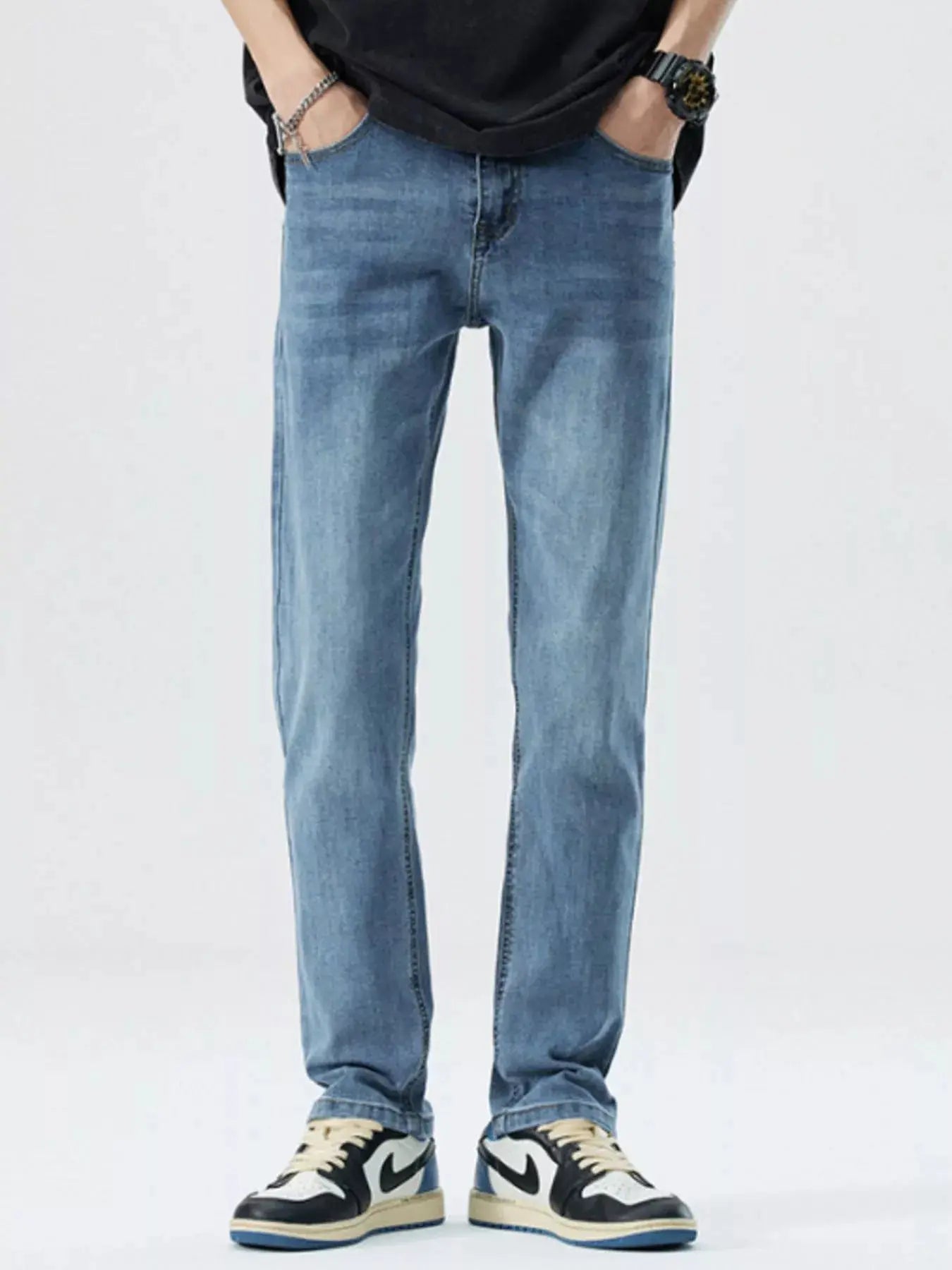 Tailored for a sleek silhouette, these men's slim fit jeans offer a modern, tapered look with just the right amount of stretch. Crafted for both comfort and style, they are perfect for dressing up or down, making them a versatile wardrobe essential.