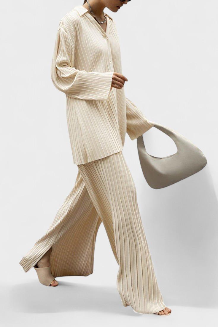 Augusta | Lounge sæt kombinerer luksus og tidløs komfort i ét to-delt ensemble. Den oversize silhuet og markante læg skaber en sofistikeret, enhverdagelig elegance, der glider fra hjemmets ro til særlige ærinder. Hvert sting afspejler håndværk og oprindelseshistorie, mens udvalgte materialer og gennemført konstruktion sikrer lang levetid og bevaret form gennem årstiderne. Den bevidste begrænsede tilgængelighed giver en sjælden eksklusivitet og en tidløs samlerappel, der føles moderne i garderoben år efter år.