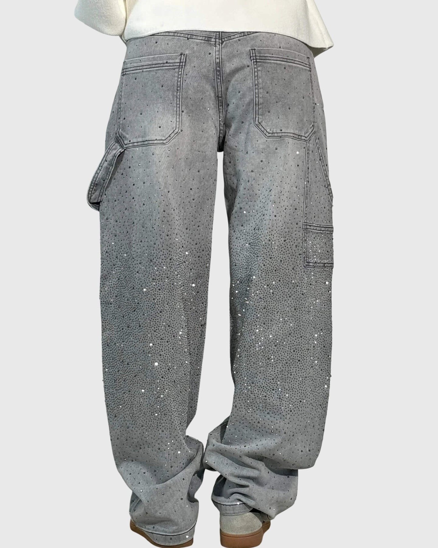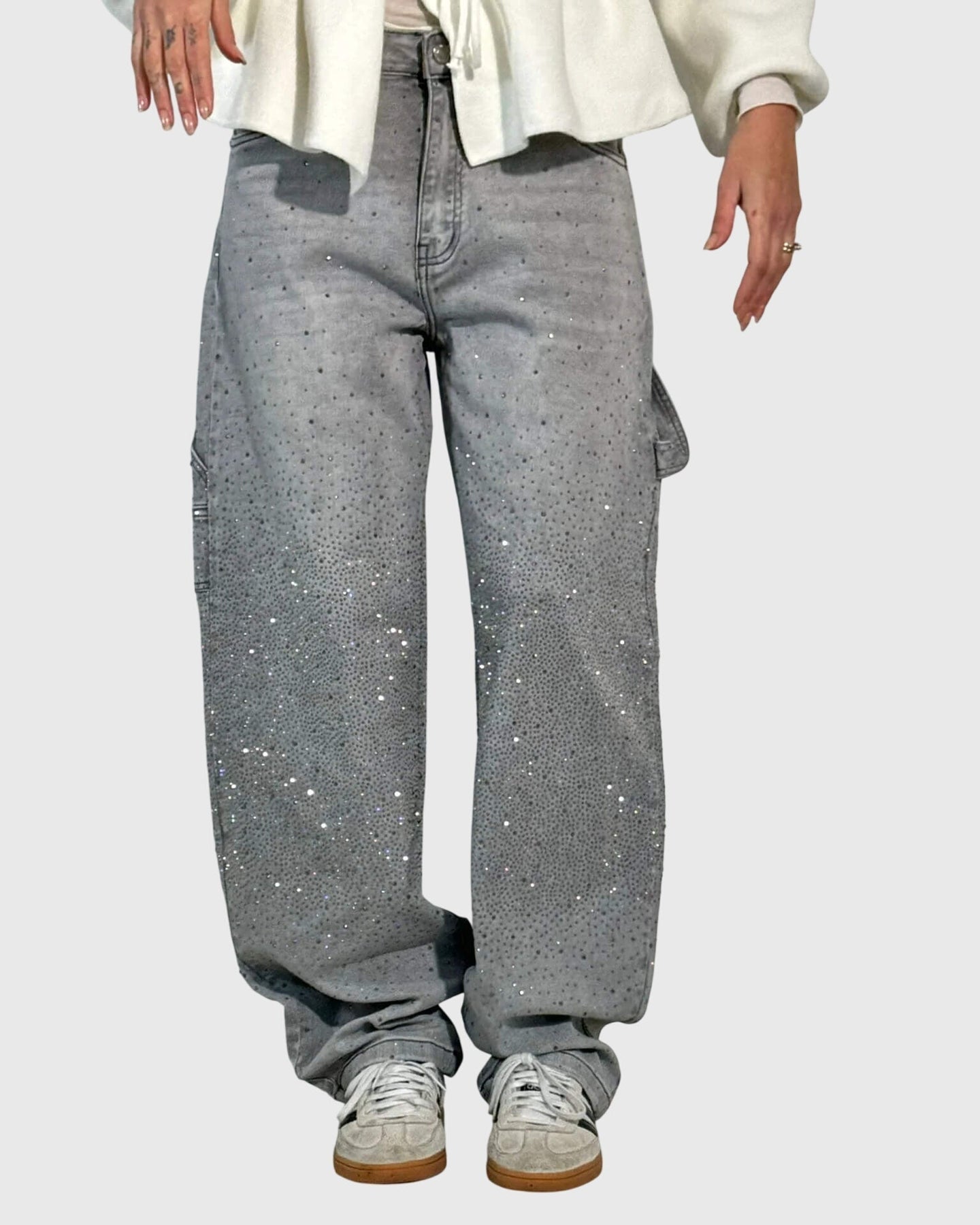 Stella | Diamantbukserne forener klassisk elegance med daglig komfort og signalerer en dedikation til håndværk og materialer af højeste kvalitet. Stella-kollektionen viser præcision i hvert sting, hvor nøje udvalgte stoffer møder diskrete diamantbesatte detaljer, der tilføjer en let glamour uden at forstyrre den rene silhuet. Den løse pasform giver bevægelsesfrihed og en tidløs stil, der passer til både formelle arrangementer og afslappede hverdagsøjeblikke. Disse bukser går ud over mode; de er en holdbar investering i samlerappel og lang levetid.